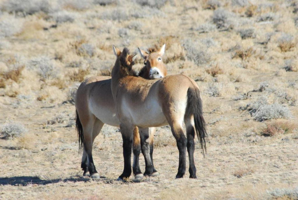 玩耍、挠痒的野马。(中国科学院供图 杨维康 摄)